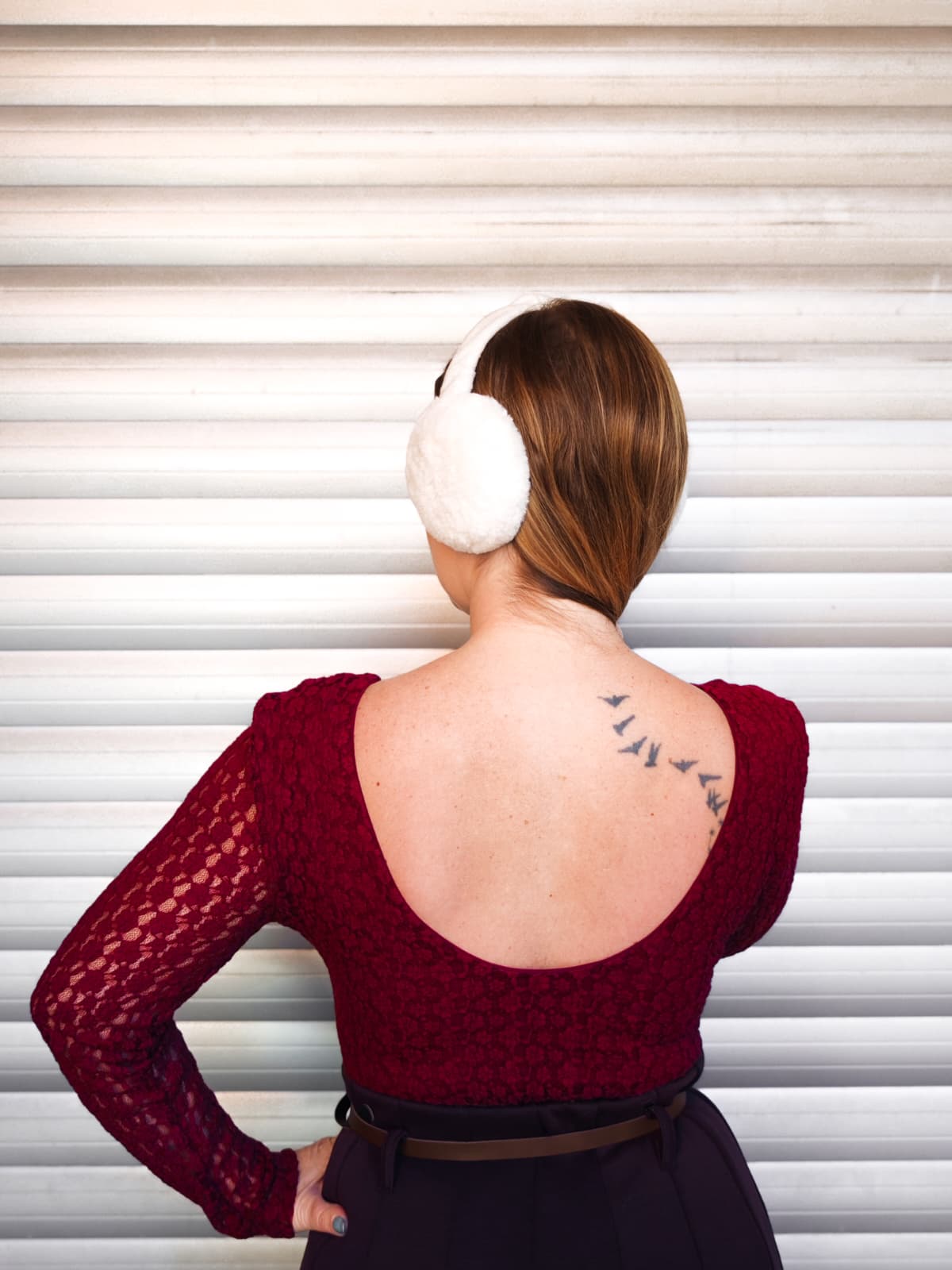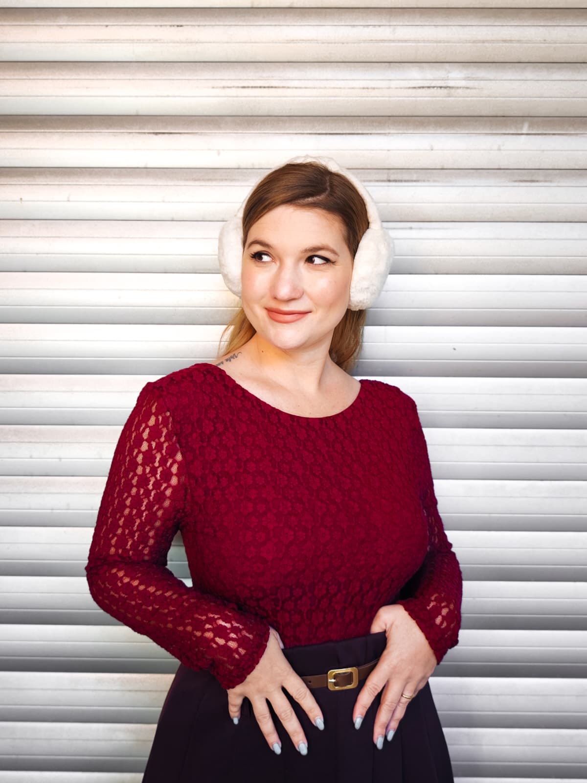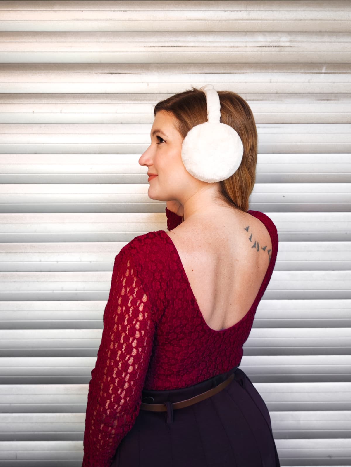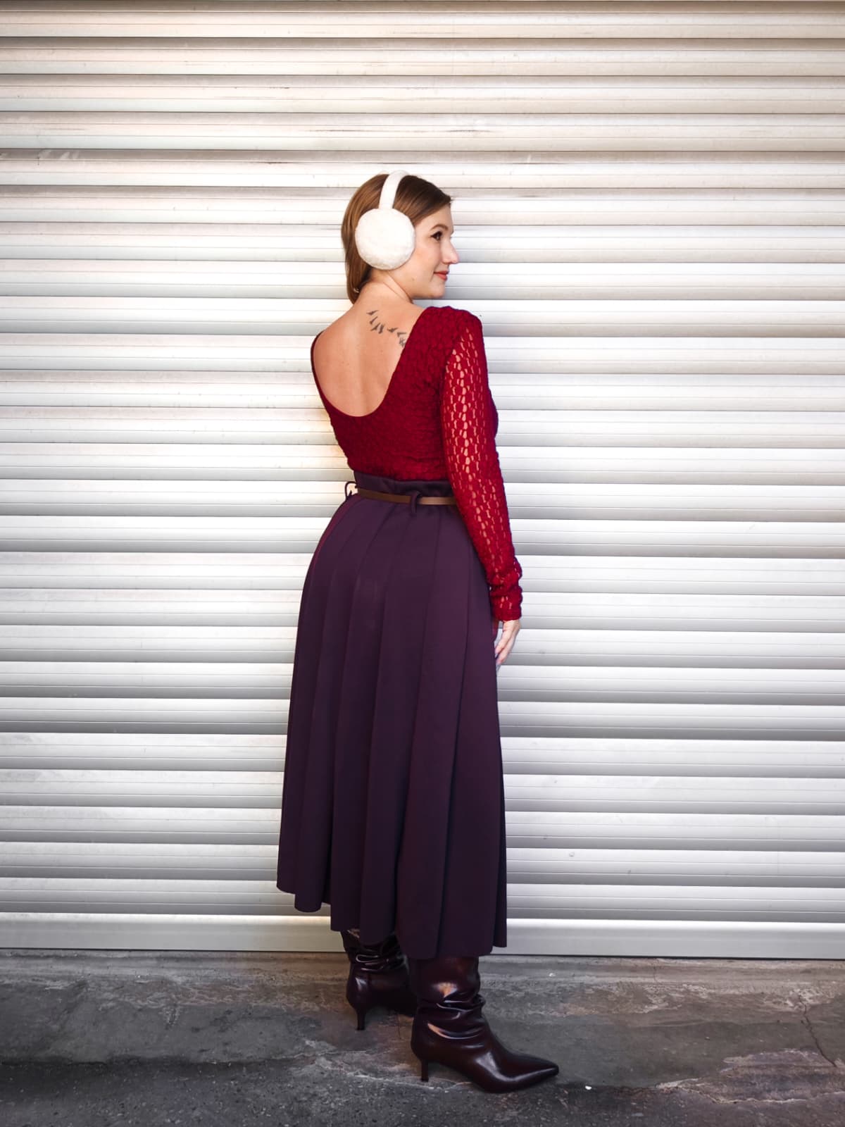 Body color rosso in cotone, scollato sulla schiena e con doppia fodera davanti. Maniche fantasia ricamata semi-trasparente.